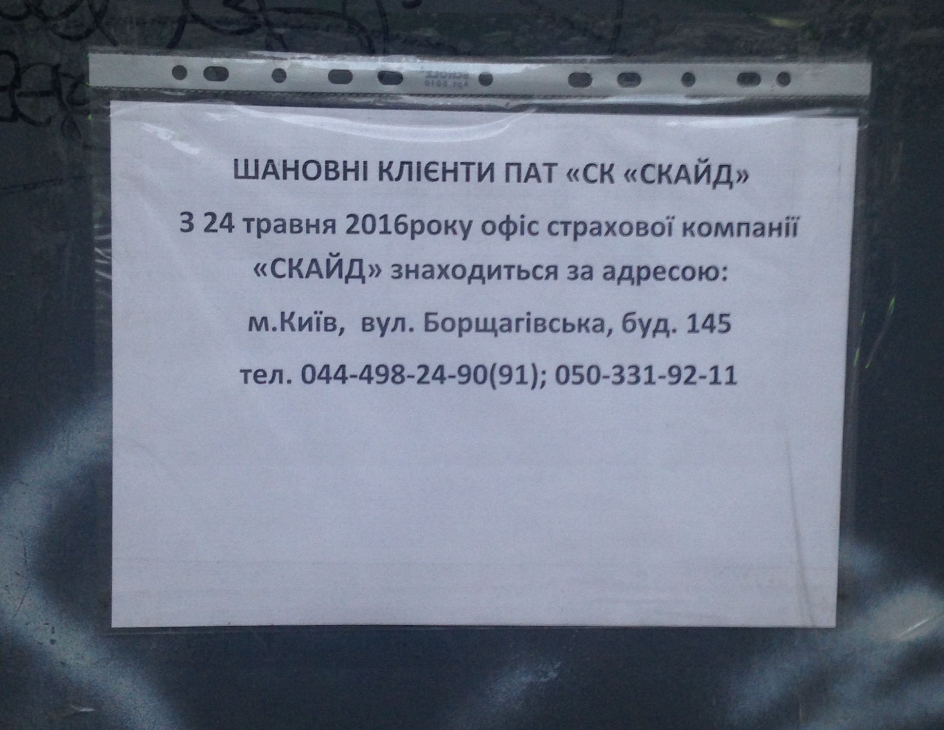 В последних числах мая, на двери офиса компании СКАЙД по адресу ул.Константиновская, 22/17 появилось объявление: